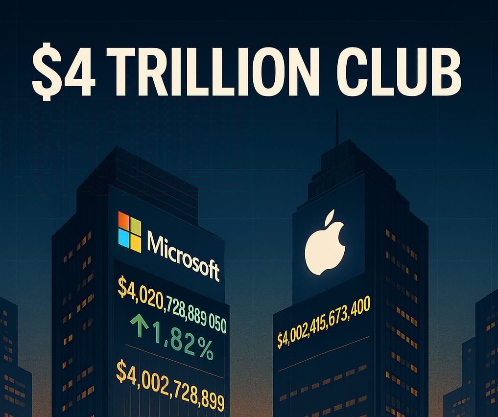 Microsoft just became the second company ever to hit a $4 trillion market cap, powered by Azure AI growth and blowout earnings. Wall Street is calling it a must-own name, with upside tied to sustained AI adoption.